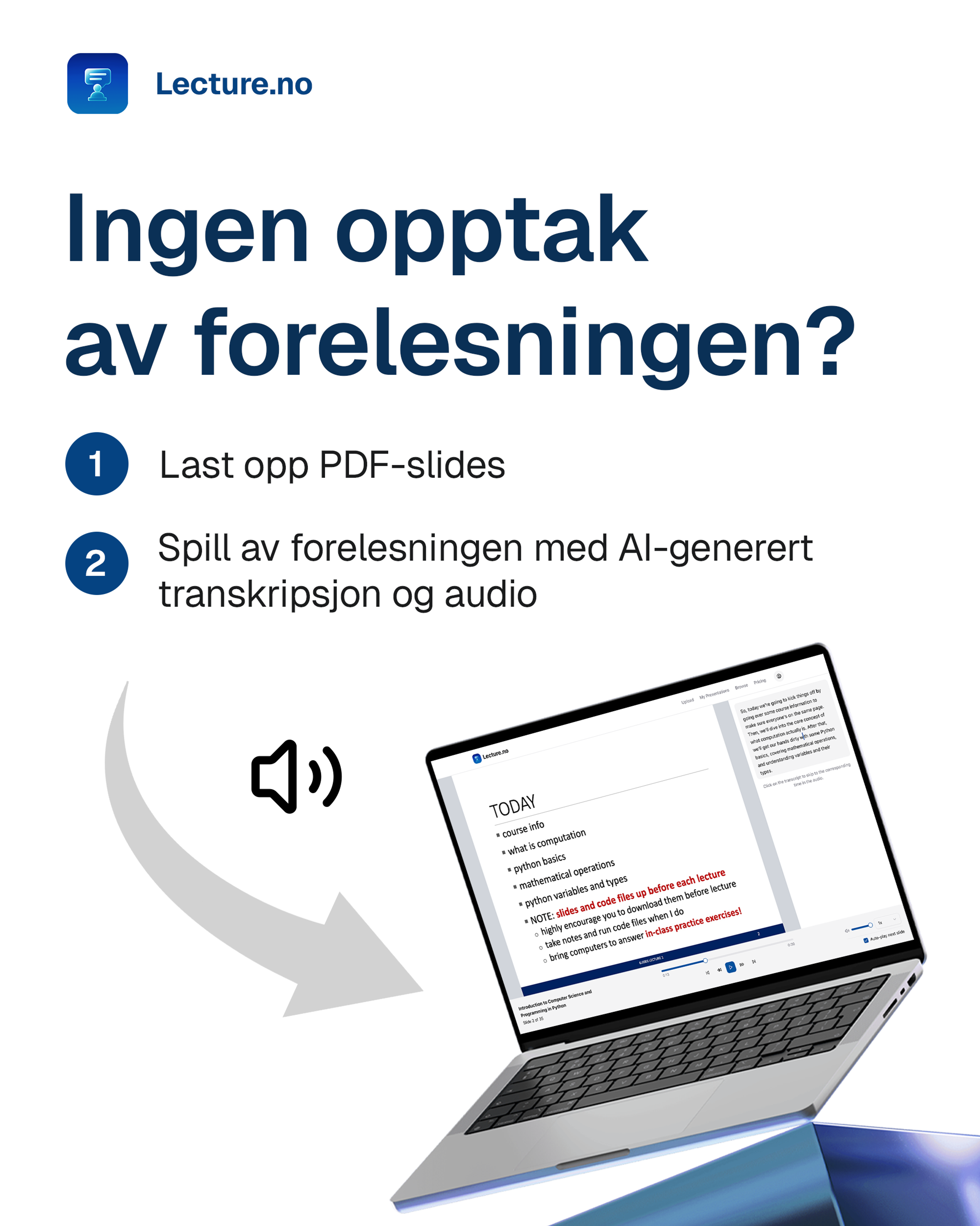Transform presentation slide PDFs into interactive audio lectures with transcripts. Perfect for students who missed class, need to review material, or learn better with audio and visual support.